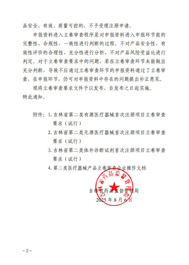 附件2-吉林省第二类无源医疗器械首次注册项目立卷审查要求.docx
